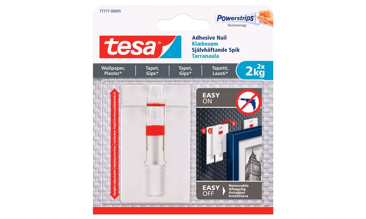 Uanset om det er en tekstureret væg eller en sart overflade, får Tesa klæbesøms unikke design jobbet gjort! Med højdejusterbarheden er Tesa klæbesøm særligt velegnet, når du vil have forskellige billeder til at hænge på linje, eller hvis du bruger to Tesa klæbesøm til ét enkelt billede. 🖼️🔝